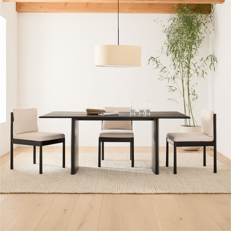 Acorn: Solid eucalyptus legs & frame; engineered wood top with walnut veneer. Cerused White: Solid ash wood legs & frame; engineered wood top with oak wood veneer. All wood is kiln dried for extra durability.
