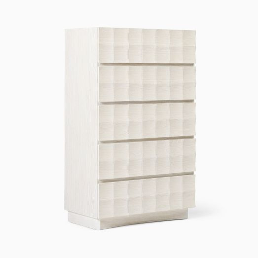 Black: Solid and engineered wood frame and legs, ash veneer over engineered wood drawer fronts.
