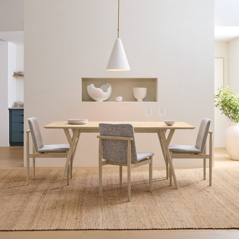 Cerused White: Solid ash wood legs & frame; engineered wood top with oak wood veneer.